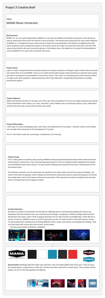 Once the band has been decided, put on your VR glasses and see the world around you in the tent transform into the glamorous big night of the Madison Area Music Awards. You will see your friends with you on stage as you follow along to the RockBand style play of the game. Players can share their scores on social media and tag the artists, share their location. This makes for a great opportunity to inform the public about MAMA as an organization and spread the word about its different programs outside of the award show like the Clyde Stubblefield scholarship.